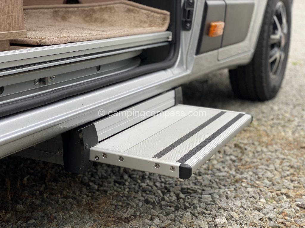 Both motorhomes and motorhomes are often quite high off the ground. An electric step allows for more comfortable entry and exit. The step is operated either automatically or manually by a button on the door of the motorhome or van. The automatic step can be pulled up when the door is unlocked or opened, for example.