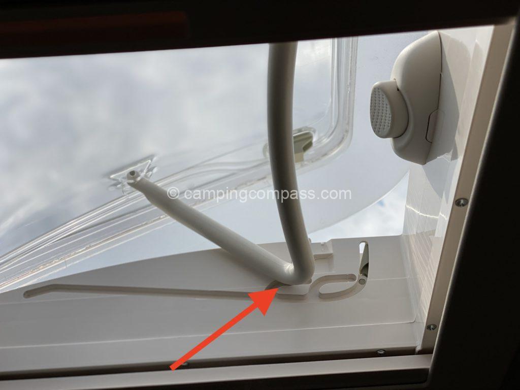 The windows in the motorhome are most often made of plastic. They are therefore quite vulnerable to breakage. Roof windows are extra vulnerable and can be broken by strong winds. I therefore recommend that you always close the roof windows when leaving the motorhome.