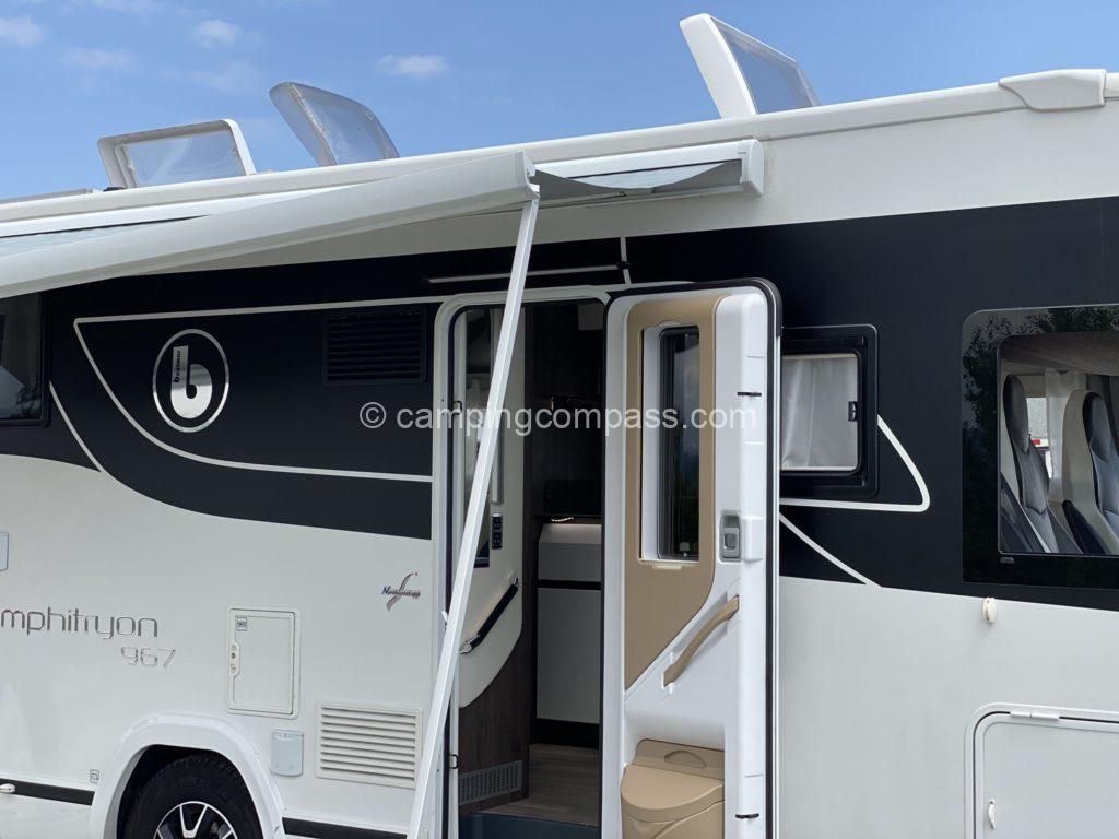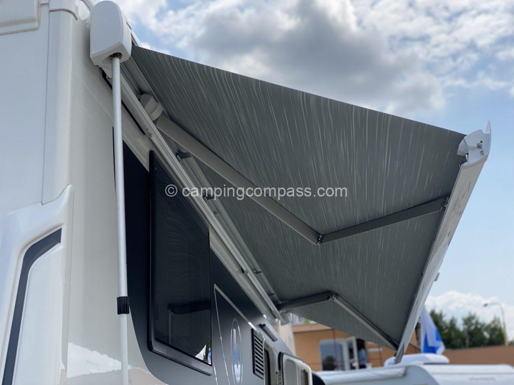 The awning is a huge area that protects you from the sun or the rain. And just because the awning is a huge area, it is very susceptible to strong winds. Whenever you open the awning, secure it firmly with straps and pegs against the ground. It’s best to close the awning for the time when you’re not at the motorhome. Closing the awning for the night has paid off for us many times.