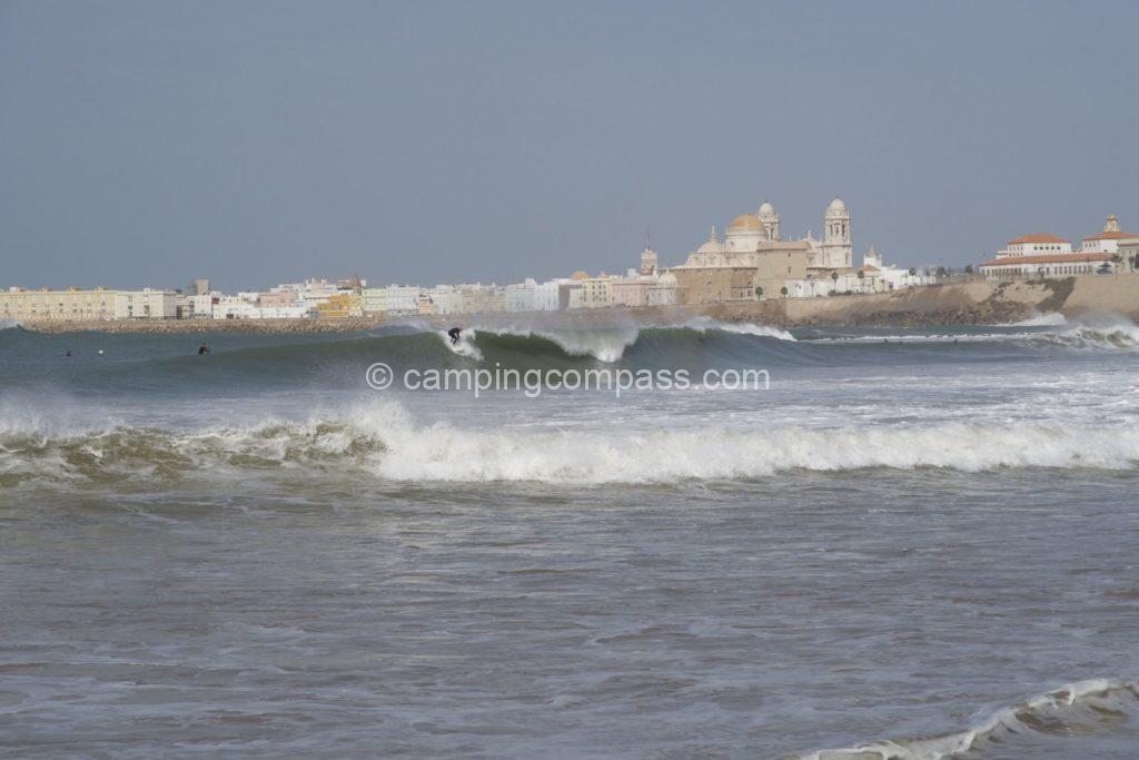 Municipal sandy beach right in the centre of Cadiz. On the beach there is a bar with a restaurant, next to the beach there is a surf school with a rental shop. Ideal place for beginners. Super spot, safe and mega views. Not to mention surfing at sunset.